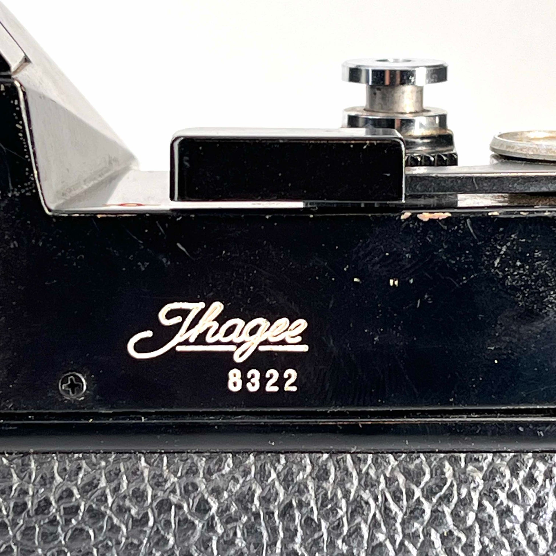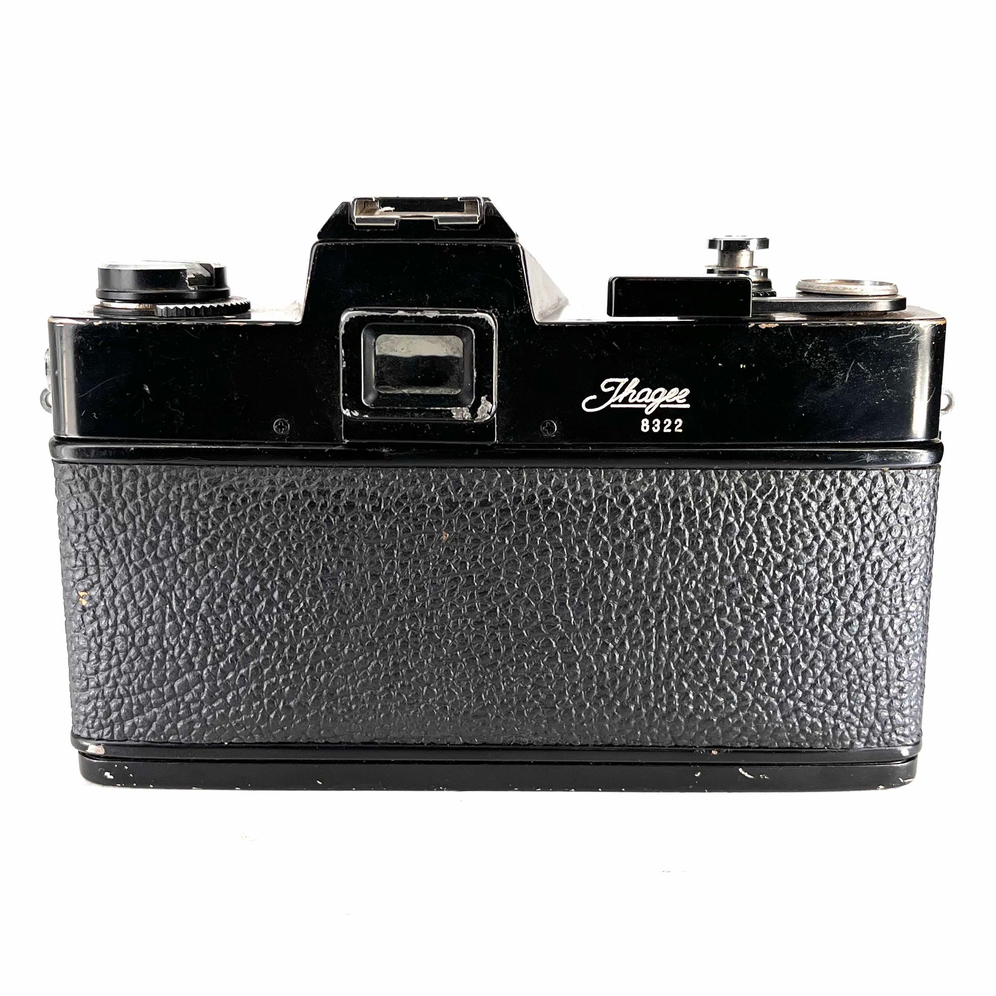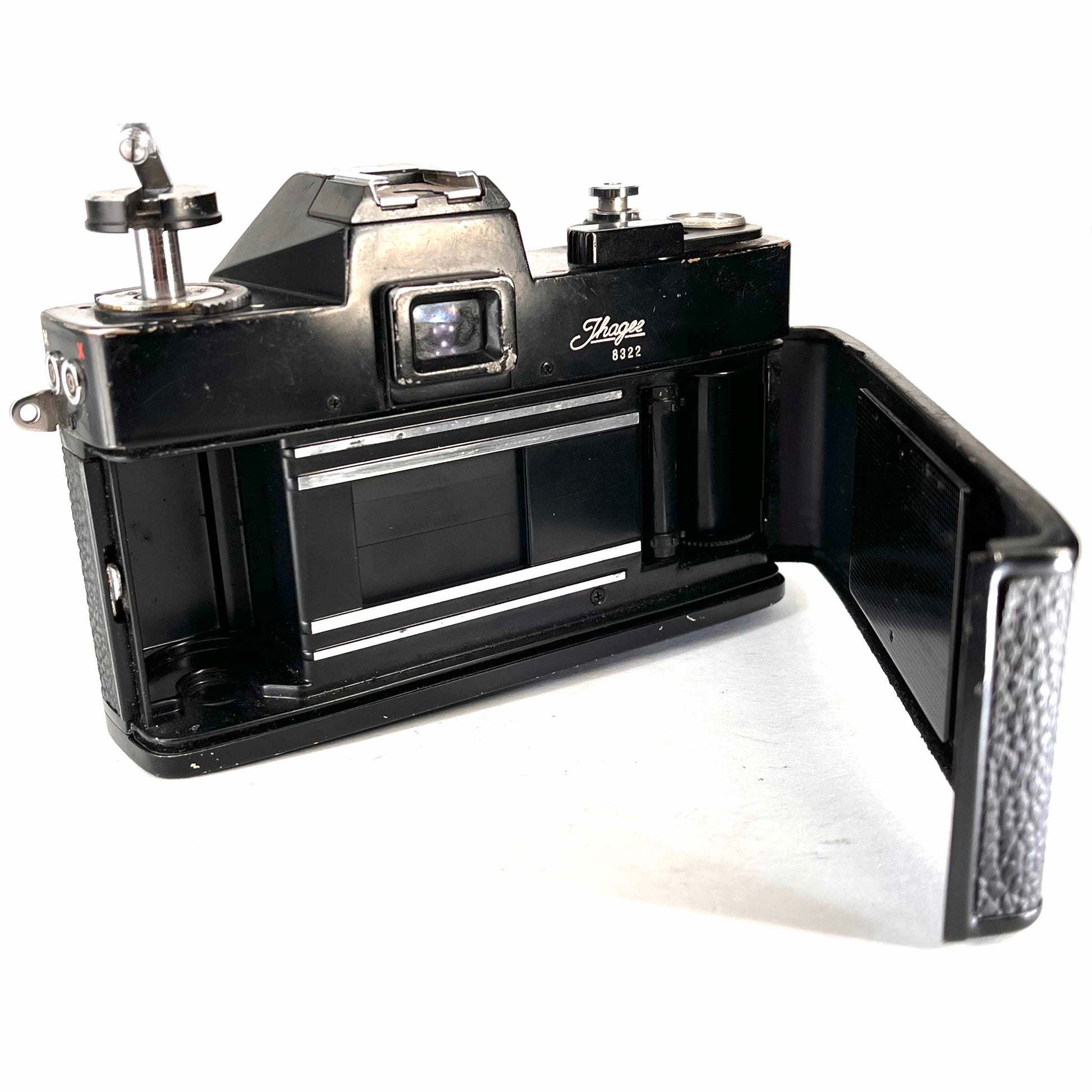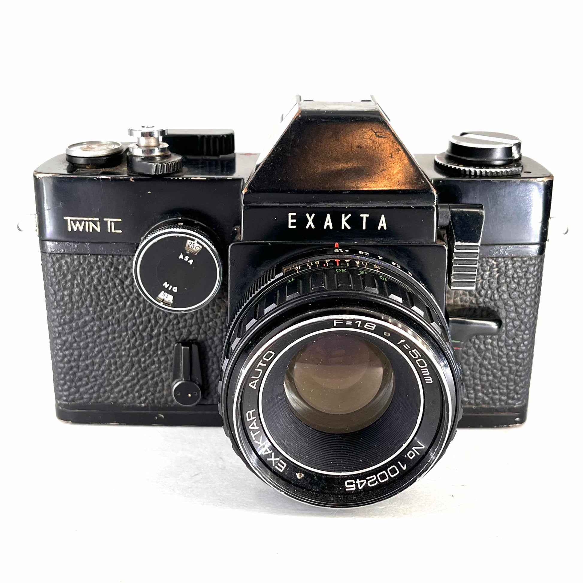 This is an Exakta Twin TL, a 35mm single lens reflex camera built in Japan by Cosina for Ihagee Kamerawerk AG, also known as Ihagee West, starting in 1970. The Exakta Twin TL was a last ditch effort by the West German version of Ihagee to launch a new series of Ihagee SLRs with a new bayonet lens mount and more traditional ergonomics after the failure of the ambitious, but flawed Exakta Real of 1966.